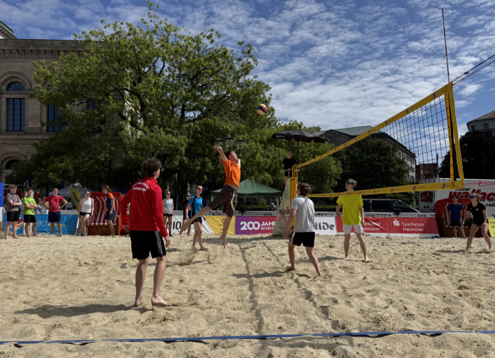 Am Freitag, den 16.05.25 haben unsere Volleyballer:innen vor der Oper mit anderen Schulmannschaften Beachvolleyball gespielt. Auch wenn der Weg zum Siegertreppchen nicht erreicht wurde, hatten alle viel Spaß und bewiesen Teamgeist. Schließlich gab es einen wunderbaren Erfolg: Den Fair Play Preis!