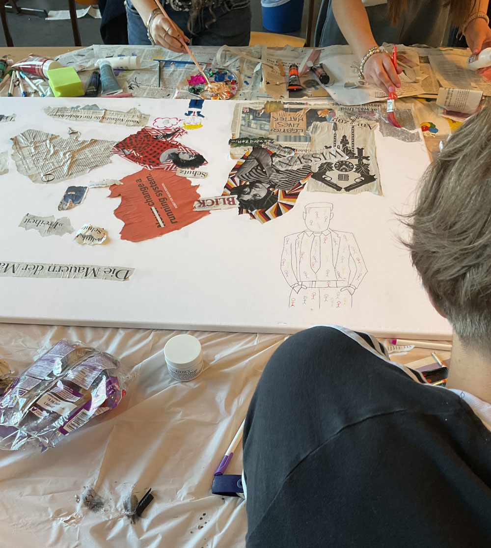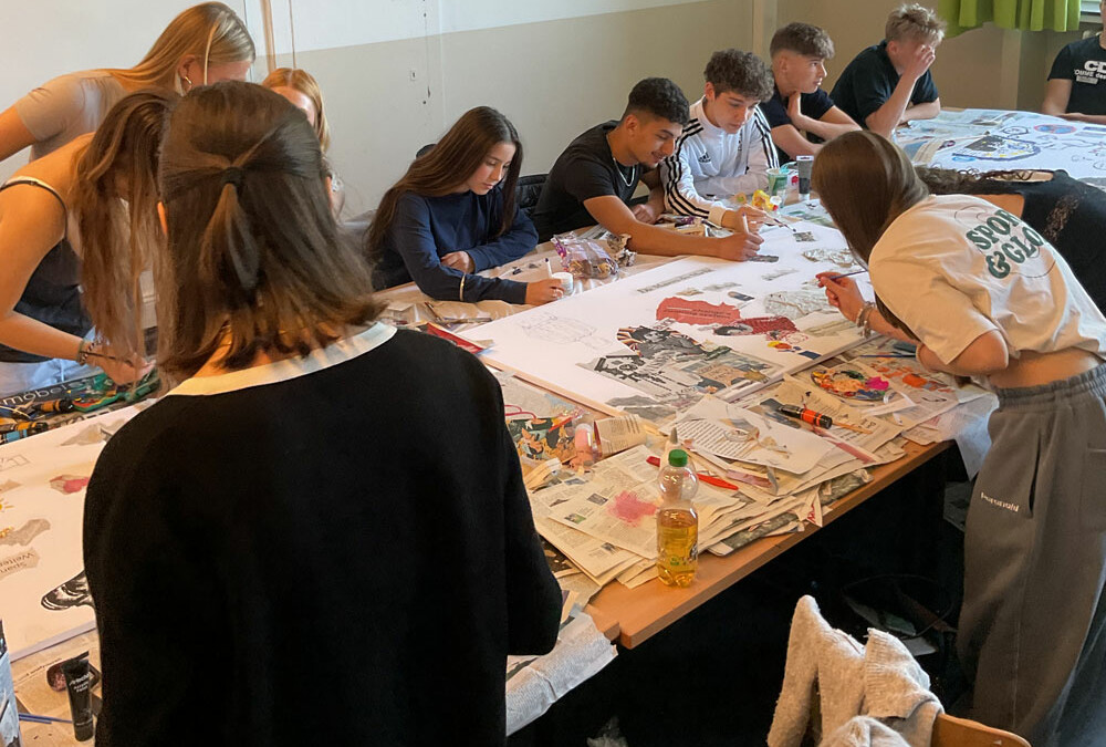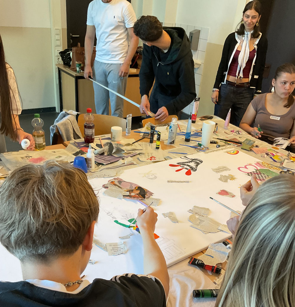 Das Ziel des Projektes 39 ist, über kreatives Arbeiten das Bewusstsein für Demokratie zu fördern und ihre Relevanz darzustellen. Die beteiligten Schüler:innen stellen hierfür ihre Gedanken zusammen auf einer großen Leinwand dar. Besonders ist, dass jede/jeder mit jedem zusammen arbeitet, aber auch individuelle Ideen gefördert werden. Die Initiative dieses Projektes stammt von den 12. Klässlerinnen Mia, Elisa, Antonia und Sophia, welche die jüngeren Schüler:innen betreuen. Dadurch ist die Stimmung sehr harmonisch und offen. Außerdem fühlen sich die Schüler:innen frei, ihre Motive, Sorgen und Erfahrungen in Bezug auf Menschenrechte und Gleichheit etc. künstlerisch und abstrakt darzustellen.